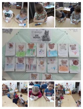 Сегодня во всех группах нашего детского сада прошли мероприятия, посвященные Дню медведя. Совместно с детьми оформлены стенд и выставка «День медведя», проведены беседы «Немного о медведе». Воспитатели закрепили с детьми знания о внешнем виде медведей и их повадках, об образе жизни, вспомнив сказку " Три медведя". Ребята с большим удовольствием посмотрели мультфильмы о медведе, разгадывали загадки о диких животных, вспомнили сказки, в которых упоминается медведь добрым и справедливым. Ребята играли в уже знакомую любимую подвижную игру: «У медведя во бору…». В группах дети создали аппликацию " Спящий медведь". В процессе работы дошколята сказали много ласковых слов Мишке для спокойного и долгого сна.